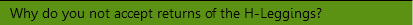 Outside of a manufacturing defect, we do not accept returns of H-Leggings for hygienic reasons. Please review our return policy for details.