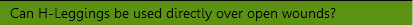 H-Leggings are not intended to be used as a medical product nor are H-Leggings a substitute for proper wound dressings. H-Leggings can be used as a covering over proper, veterinary approved, wound dressings and casts.
