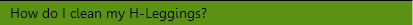 H-leggings should be machine or hand washed in warm water, with a mild detergent and on a regular basis. For machine washing it is recommended the H-Leggings be placed securely in a delicate items bag to reduce the chance they will become tangled. Tumble dry on low heat.