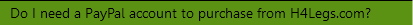 If you do not have a PayPal account BUT have used PayPal at one point in the past then the email address you previously used may be stored with PayPal. We suggest using an alternate emails address or simple use Sales@h4legs.com, send us an email with your name and we will send you a receipt. Ordering is the easy part - finding time for FIdo is always the toughest part of the day.